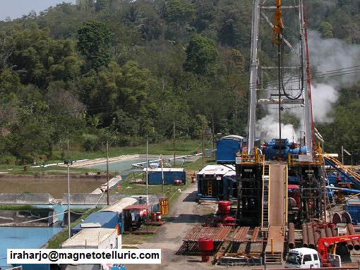 Sometimes, the MT site is situated near a very noisy spot. This big genset here, for example, creates harmonic noise to the MT records. Another problem is static noise from low heavy cloud touching the ground.