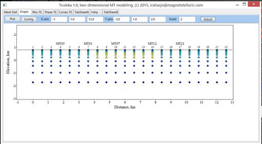 The figure below shows the grid and the MT sites. The MT site assignment can be easily moved around on the grid with nodal numbering.